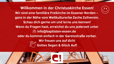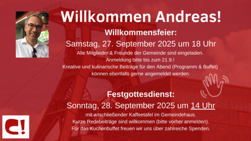Gottesdienst immer am Sonntag um 10 Uhr in der Christuskirche.Parallel KiGo für die KinderBitte auf aktuelle Hinweise achten!